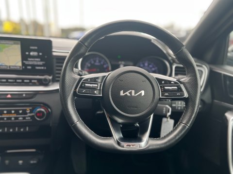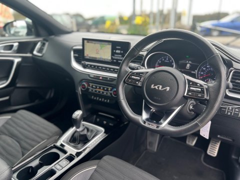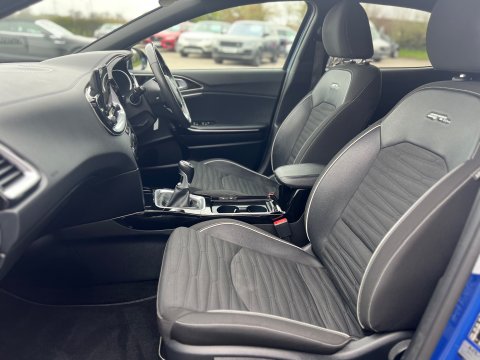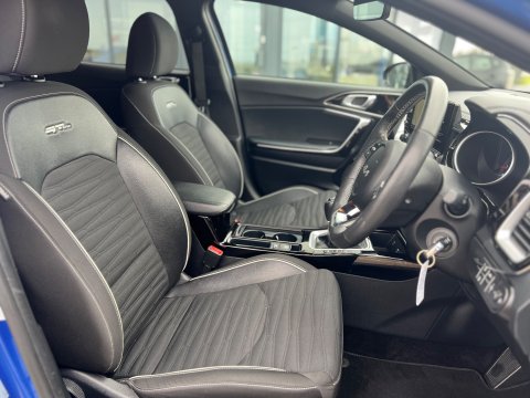 UTTERLY STUNNING EXPAMPLE OF THE KIA XCEED FINISHED IN GLEAMING BLUE FLAME WITH CONTRASTIC DIAMOND FINISHED ALLOY WHEELS, THE GT LINE BRINGING AN EXTRA LEVEL OF DETAILS TO THIS ALREADY INCREDIBLY SPEC CAR - THE 1.5 PETROL ENGINE PROVIDING POWER AND ECONOMY AND EVEN MORE DESIREABLE AT CURRENT TIMES WITH DIESEL PRICES SET TO RIDE HIGHER - FANTASTIC SPECIFICATION INCLUDING HEATED SEATS, HEATED STEERING WHEEL, SAT NAV AND MANY MANY MORE - THE CAR ALSO HAS A VERY IMPRESSIVE SERVICE RECORD WITH ONE FORMER LAD OWNER AND 2 SERVICES CARRIED OUT BY KIA AND A 3RD TO BE CARRIED OUT BY OURSELVES USING THE DEALER PARTS - 2 KEYS, Full dealership history, 5 seats, Metallic Blue Flame, 1 owner, Upgrades - Cloth - Faux Leather - GT Line - Black