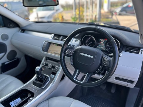 SUPERB EXAMPLE OF THE AMAZING RANGE ROVER EVOQUE BENIFITTING FROM THE HIGHLY DESIRABLE 2.2 ENGINE ~ BOASTING A COMPREHENSIVE SERVICE HISTORY INCLUDING THE ALL IMPORTANT CAMBELT CHANGE ~ FANTASTIC SPECIFICATION WITH OVER £2900 OF FACTORY FITTED OPTIONS ~ 12 MONTH NATIONWIDE WARRANTY + 2 KEYS ~ ARRIVING VERY SHORTLY, 5 seats, Grey, 3 owners, Upgrades - Front Fog Lights, Glass - Privacy - Rear of B Post, Privacy Glass, Roof - Fixed Panoramic, Spare Wheel - Temporary Steel 18in, Tailgate - Powered Electrical Tailgate, Grained Leather - Cirrus with Lunar-Cirrus Interior