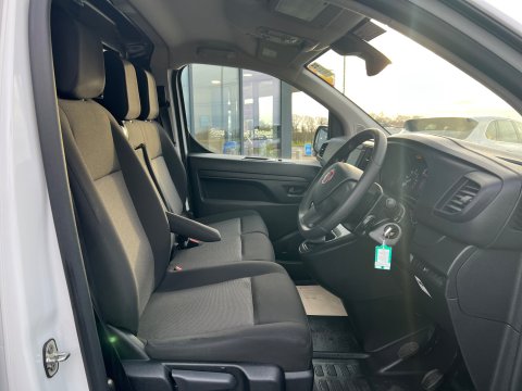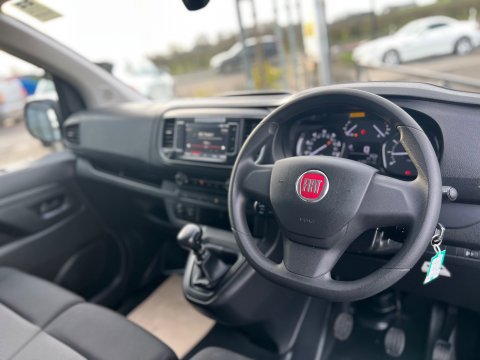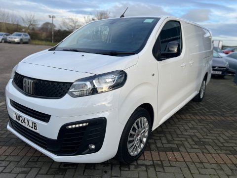 This 2024 Fiat Scudo offers exceptional value with its remarkably low mileage of just 17,000 miles, having been owned by only one careful keeper. This BlueHDi Primo LWB Euro 6 (s/s) 6dr model is equipped with a 1.5 litre diesel engine, meeting Euro 6 emission standards. It features practical body coloured rear corner bumpers with a black centre section, and eight fixed floor mounted load restraint lashing eyes for secure cargo. Inside, you'll find manual air conditioning for comfort and a panoramic rear view camera with parking assistance.